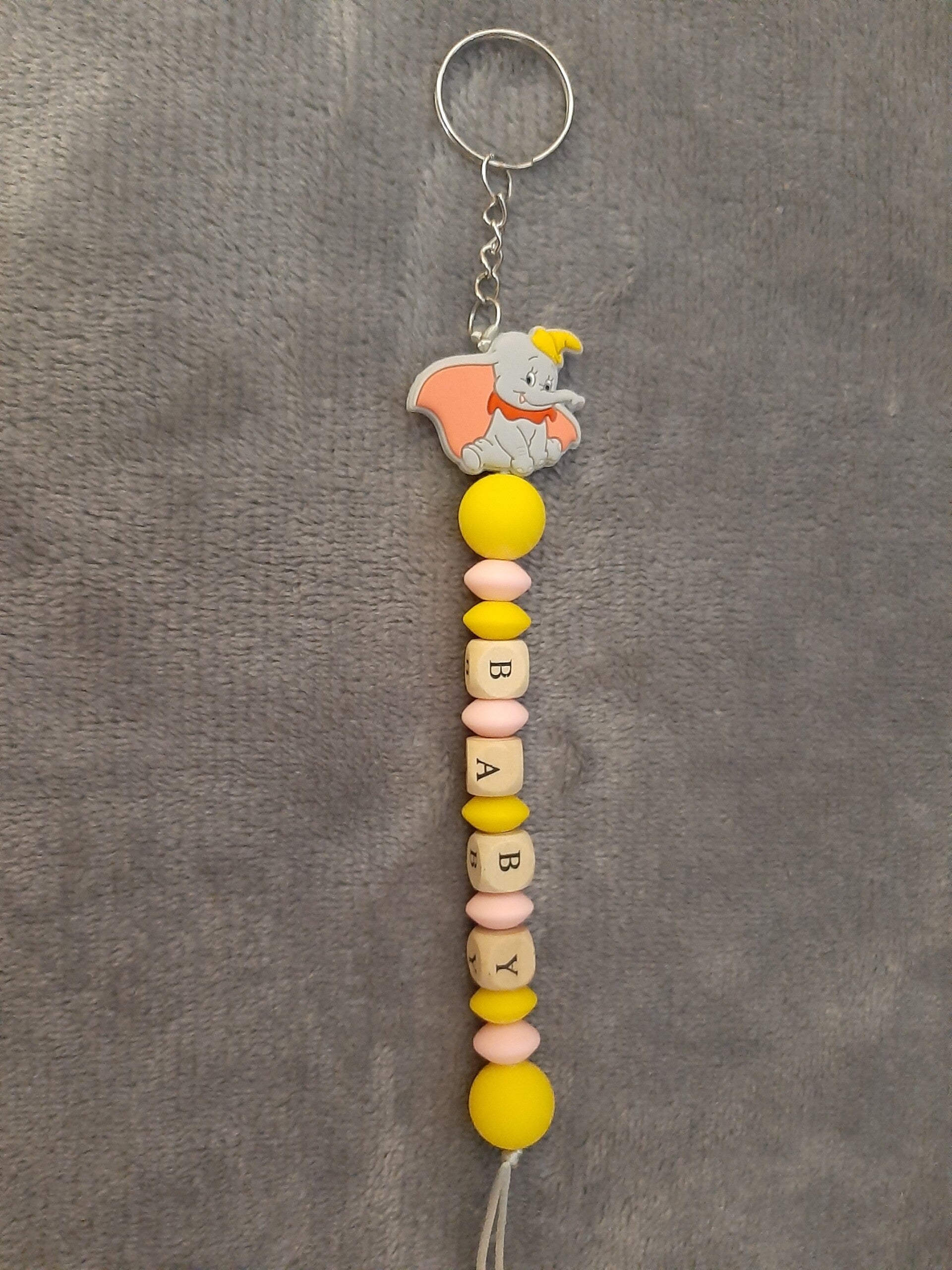 - Une attache tétine et un porte-clé avec possibilité de changer "BABY" en mettant le prénom de l'enfant